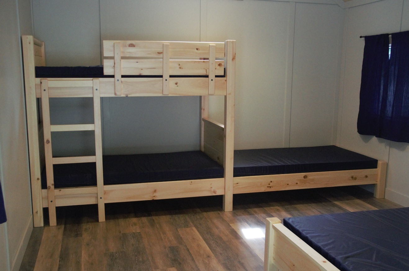 No tent? No problem! Our cozy, wheelchair accessible cabins, are suitable for up to five people with one queen bed, one set of single bunk beds and one single bed. Located on the edge of Cultus Lake, in Cultus Lake Provincial Park, they have levelled entry ways and ramps and include heating, lighting and a power outlet (110 volts). Each 200 sq ft cabin has its own private covered patio complete with picnic table and stainless steel cooking surface. Guests will need to provide their own bedding, dishes, pans and cooking stove.